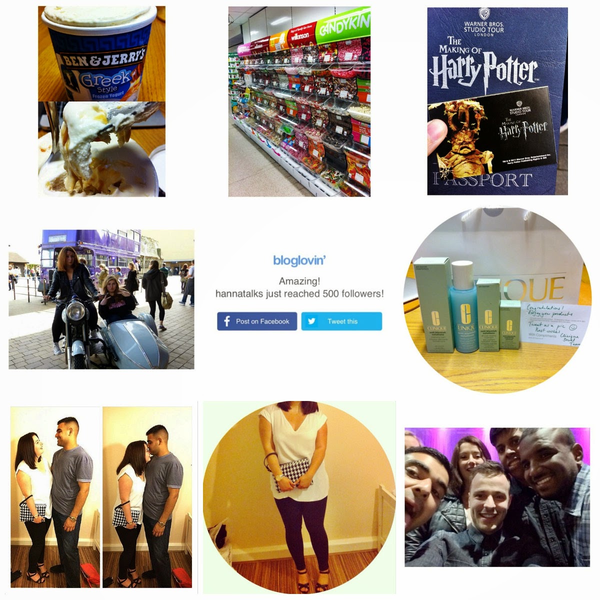 I’ve had such a busy week this week but an enjoyable one. I spent monday slobbing out with the boyf and gorging on ben & jerrys Greek style frozen yoghurt ~ If you haven’t already tried it then make sure you do! A heavenly treat for fellow honey lovers. I visited the Harry Potter studios this week which you can read all about here, it was an amazing experience and there’s something for everyone. I received my Clinique prize for being 1 of 5 winners, and the prize is worth a whopping £75! I’ve used all the products before but never had the money to buy them full sized, so I’m excited to use them on a regular basis. This weekend I met my boyfriends’ friends for the first time and enjoyed a night out in London. They’re the loveliest bunch of guys and I feel so privileged to now be part of their clique. CUTE.